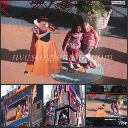 The middle of the day had us having a once in a lifetime virtual reality interactive experience where my daughter “interacted” with Snow White blowing her kisses but the best part was seeing their image on a 60 -foot digital screen in the heart of Times Square.