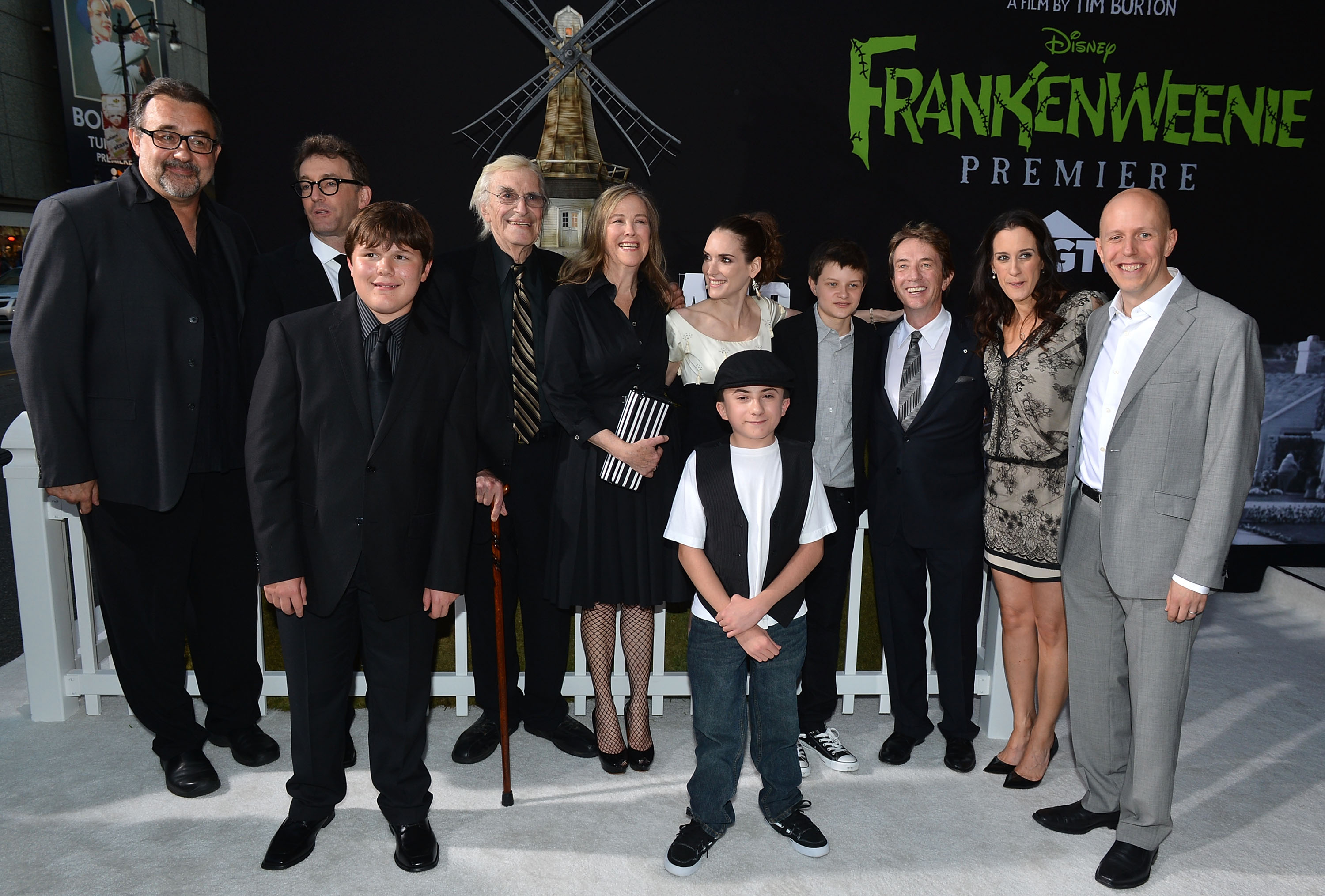 Actors Robert Capron, Atticus Shaffer, Martin Landau, Winona Ryder, Charlie Tahan, Martin Short, Catherine O’Hara and screenwriter John August arrive at Disney’s “Frankenweenie” premiere (Photo by Alberto E. Rodriguez/WireImage)